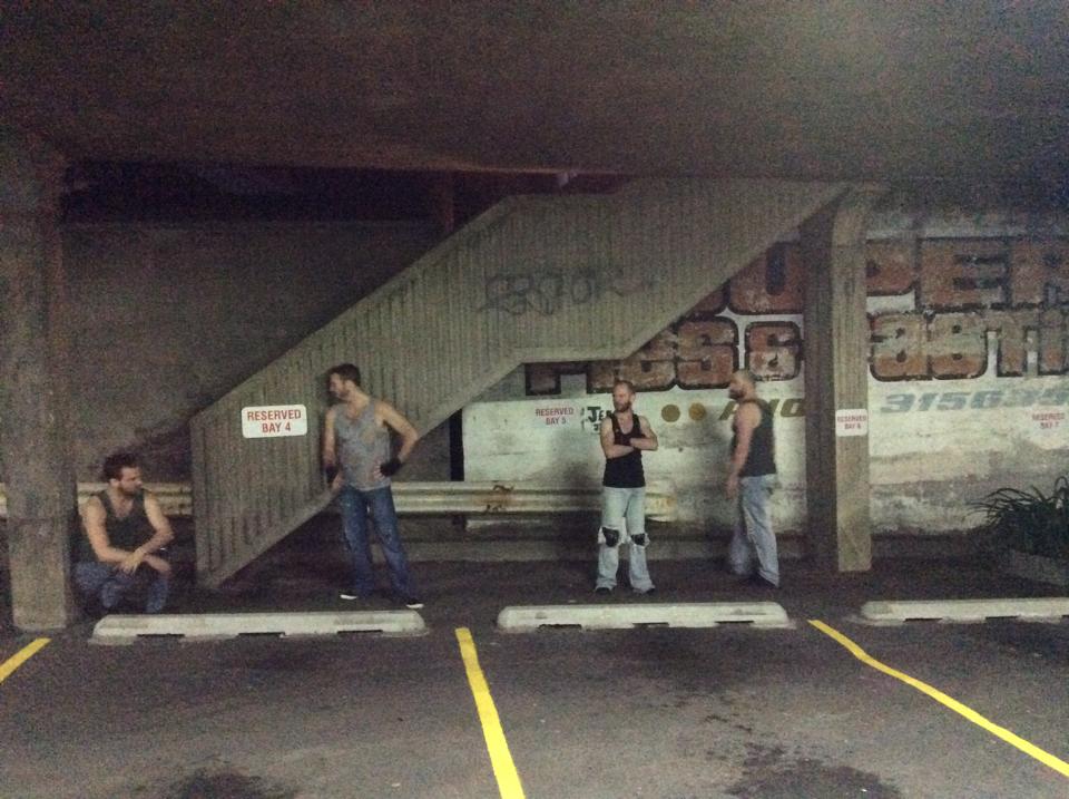 The award-winning ‘Savages’ is a cautionary tale about a group of men who don’t really know themselves or what they can become. Multi award-winning playwright Patricia Cornelius’ confronting play takes a dangerously tough look at masculinity and misogyny amongst a pack of ordinary young men. The story is based on the story of Dianne Brimble who died on a P&O cruise ship after it set sail in 2002, but this play has no apparent victim. Audiences are taken on a journey as they follow these four blokes as they prepare for “the trip of a lifetime”. The four men: Rabbit, Runt, George and Craze, all around the 40 year-old-mark, are likeable larrikins who turn savage throughout the journey. A car park is transformed into a cruise ship, and the audience are taken on a journey though this dark and sometimes dangerous space.